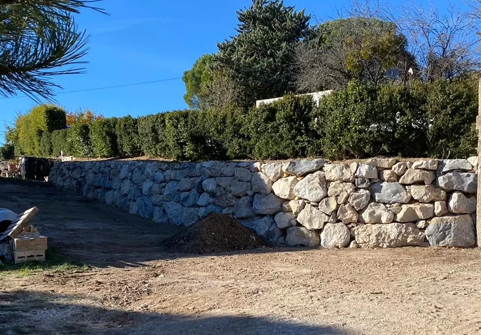 Zoomer 10-05-2024 Réalisation d'un enrochement de soutènement qui vient donner de l'élégance et mettre en valeur cette haie.
